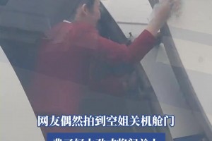 网友偶然拍到空姐关机舱门,费了好大劲才将门关上